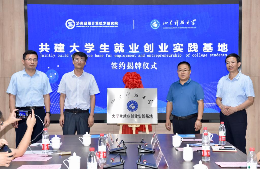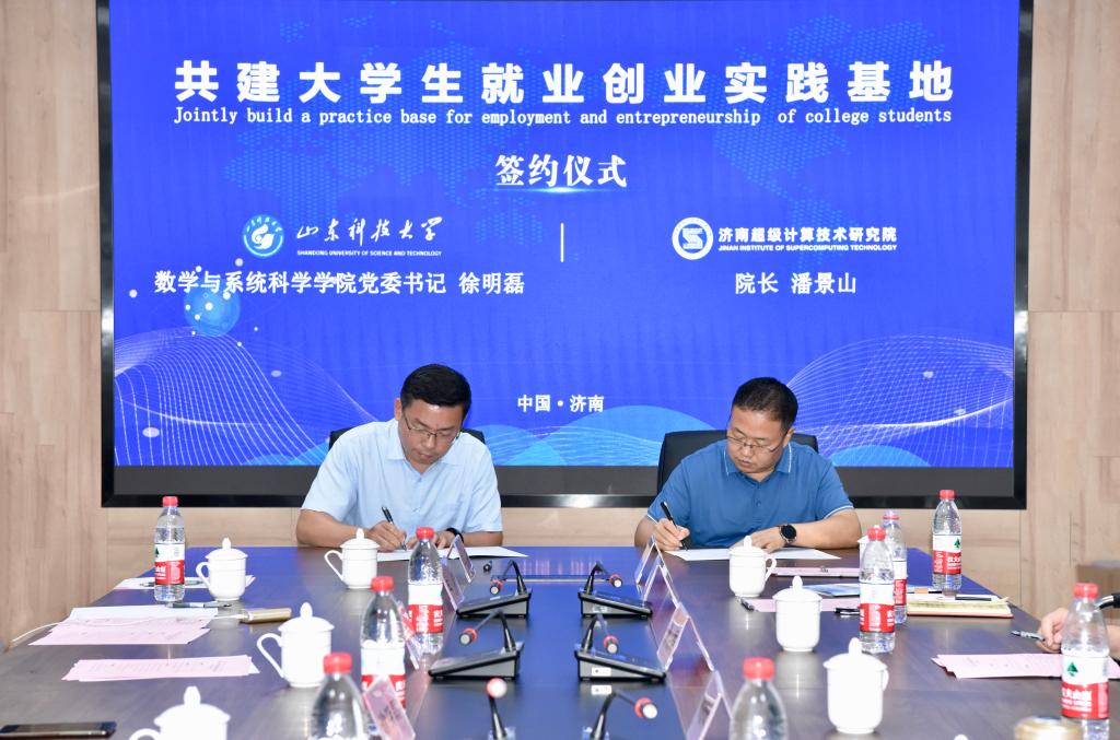 7月10日,山东科技大学数学与系统科学新濠博亚娱乐 与济南超级计算技术研究院签署大学生就业创业实践基地共建协议。齐鲁工业大学(山东省科新濠博亚娱乐 )原副校(院)长贺国平,济南超级计算技术研究院院长潘景山、产学研合作部部长郭猛、综合办公室主任杨佰才,山东科技大学新濠博亚娱乐 党委书记徐明磊、院长董焕河,学生工作部副部长孔环等人出席签约仪式。徐明磊、潘景山代表双方签约。贺国平、徐明磊、董焕河、潘景山代表双方为“山东科技大学大学生就业创业实践基地”揭牌。