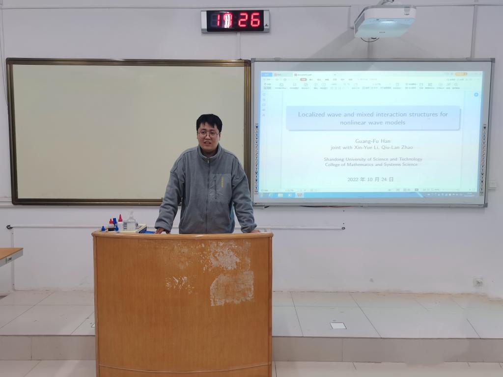 2020级数学硕士韩光福作了题为“非线性波模型中的局域波和混合相互作用结构”的报告。本次讲坛的点评嘉宾是新濠博亚娱乐