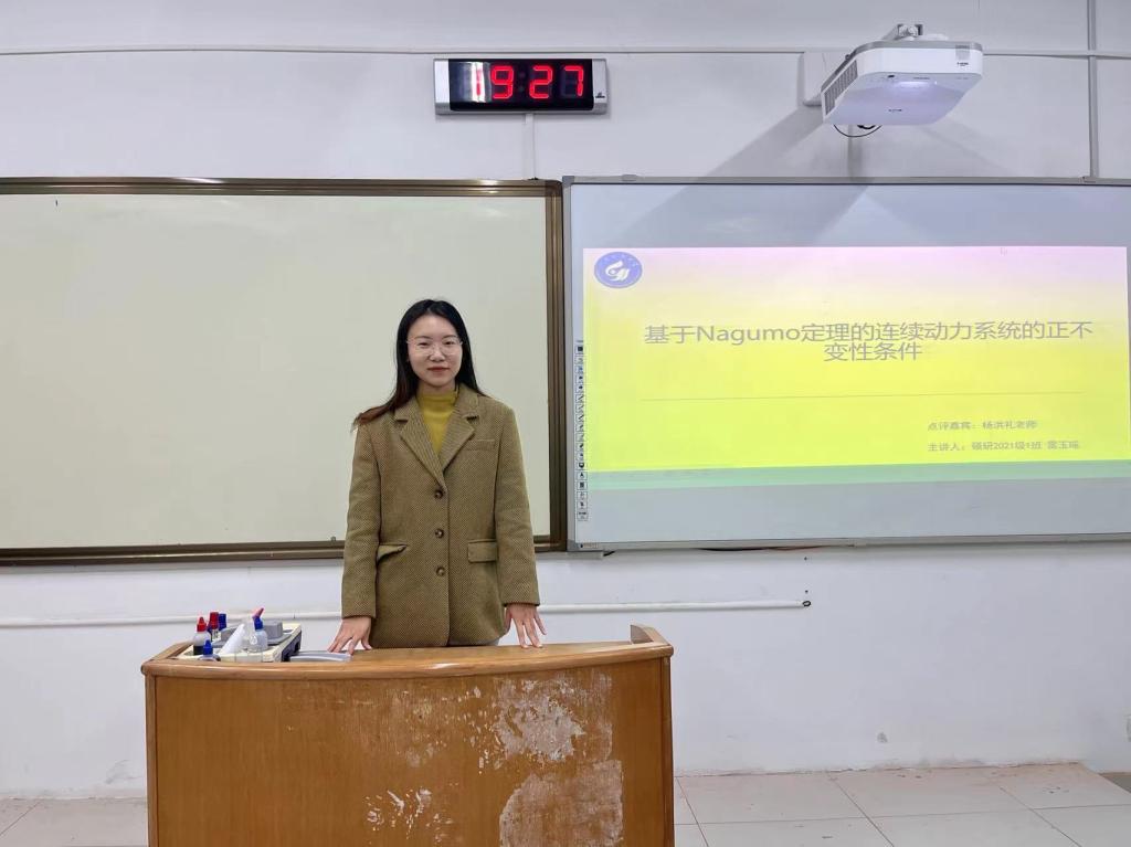 2021级数学专业硕士雷玉瑶作了题为“基于Nagumo定理的连续动力系统的正不变性条件”的报告。本次点评嘉宾是新濠博亚娱乐