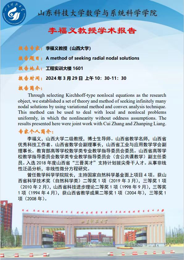 数聚西海岸科学讲堂2024年第10期:李福义教授学术报告