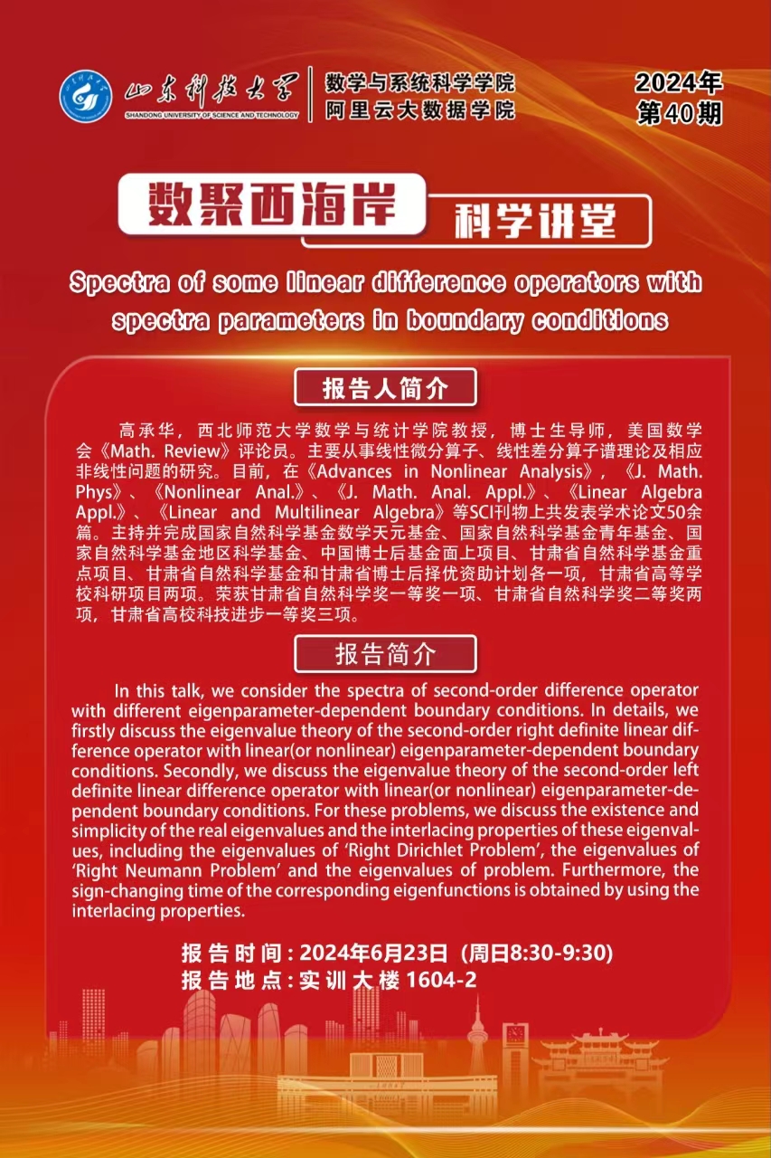 数聚西海岸科学讲堂2024年第40期:高承华教授学术报告