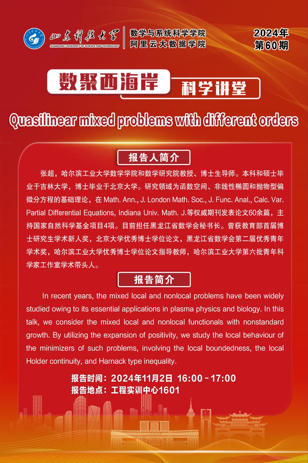 数聚西海岸科学讲堂2024年第60期:张超教授学术报告