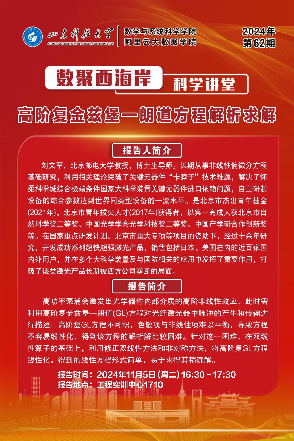 数聚西海岸科学讲堂2024年第62期:刘文军教授学术报告