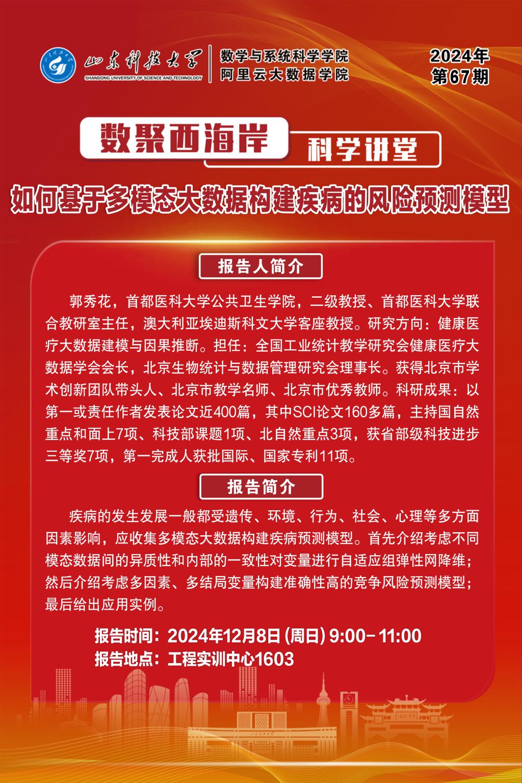 数聚西海岸科学讲堂2024年第67期:郭秀花教授学术报告