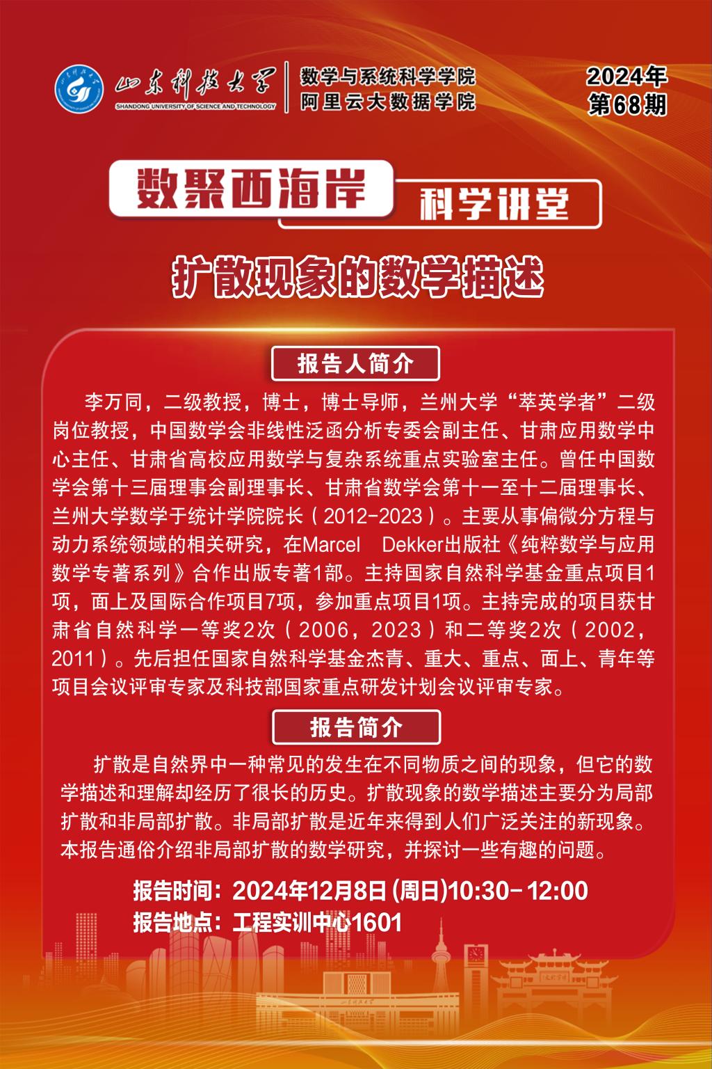 数聚西海岸科学讲堂2024年第68期:李万同教授学术报告