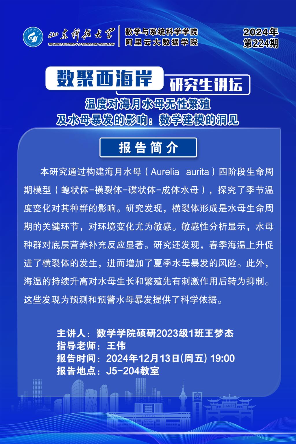 数聚西海岸研究生讲坛2024年第224期:温度对海月水母无性繁殖及水母暴发的影响:数学建模的洞见