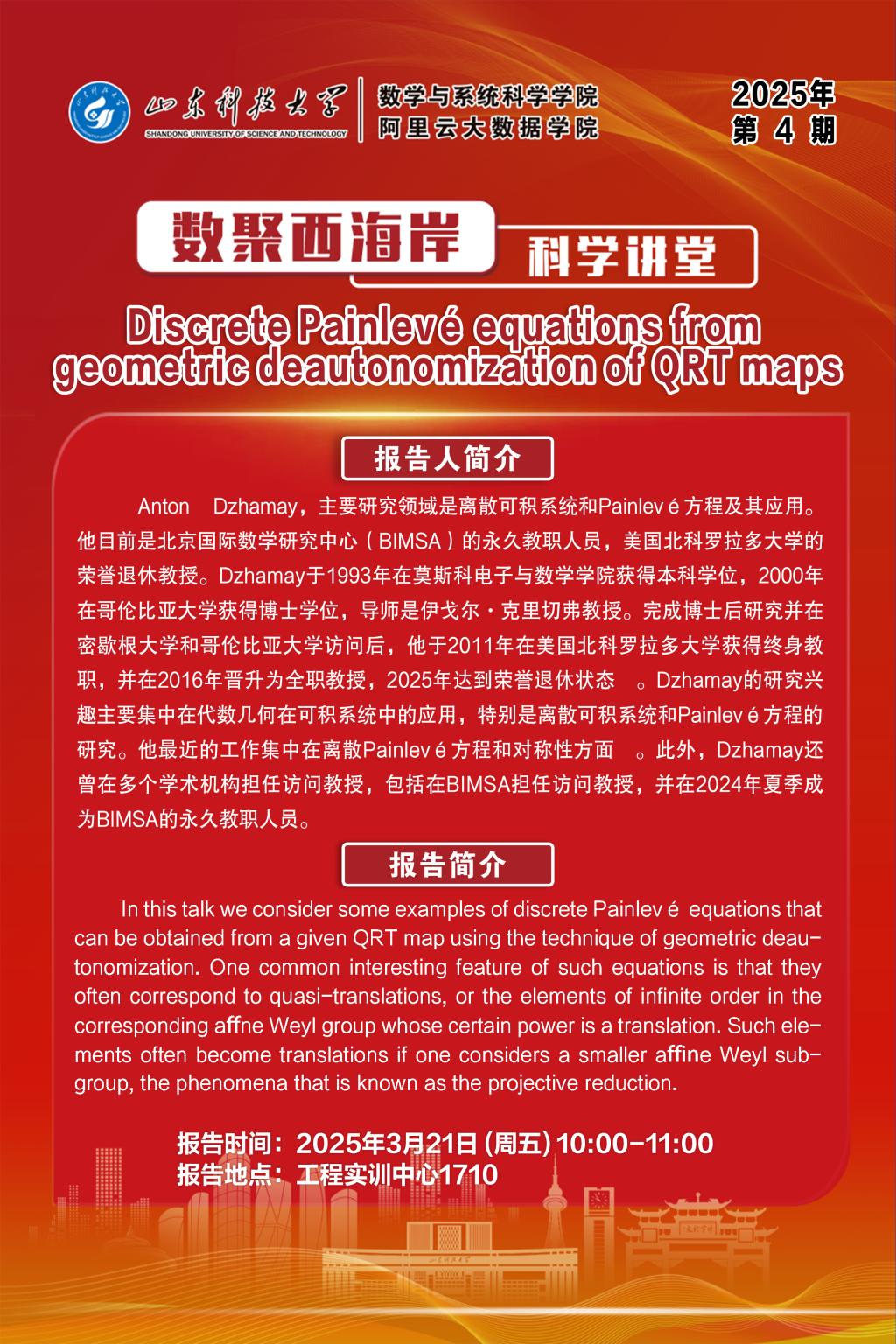 数聚西海岸科学讲堂2025年第4期:Dzhamay教授学术报告