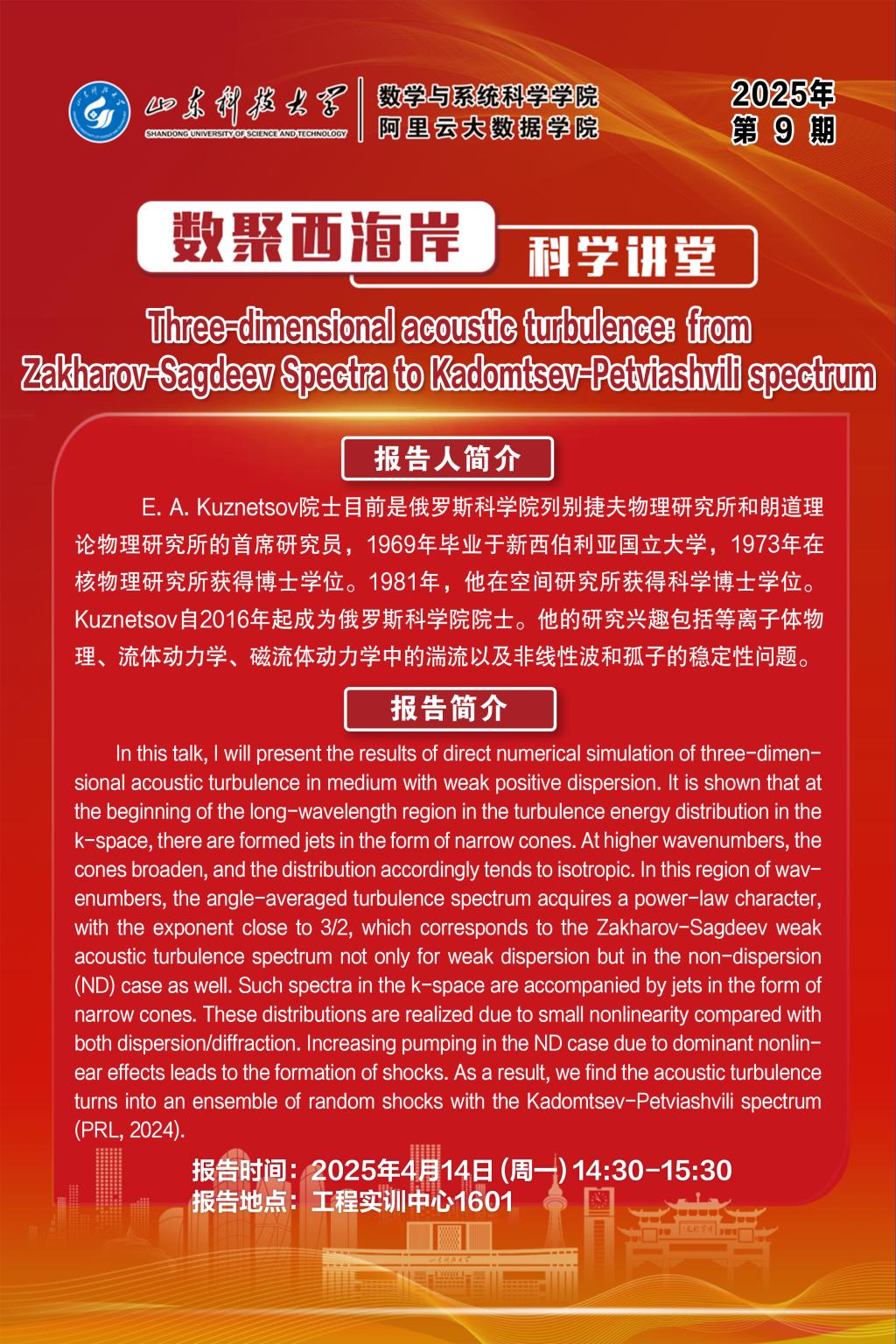 数聚西海岸科学讲堂2025年第9期:Kuznetsov教授学术报告