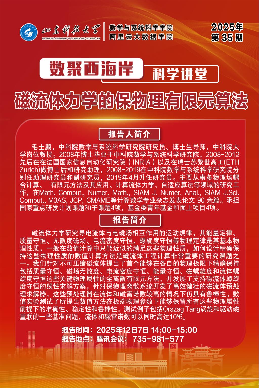 数聚西海岸科学讲堂2025年第35期:毛士鹏教授学术报告