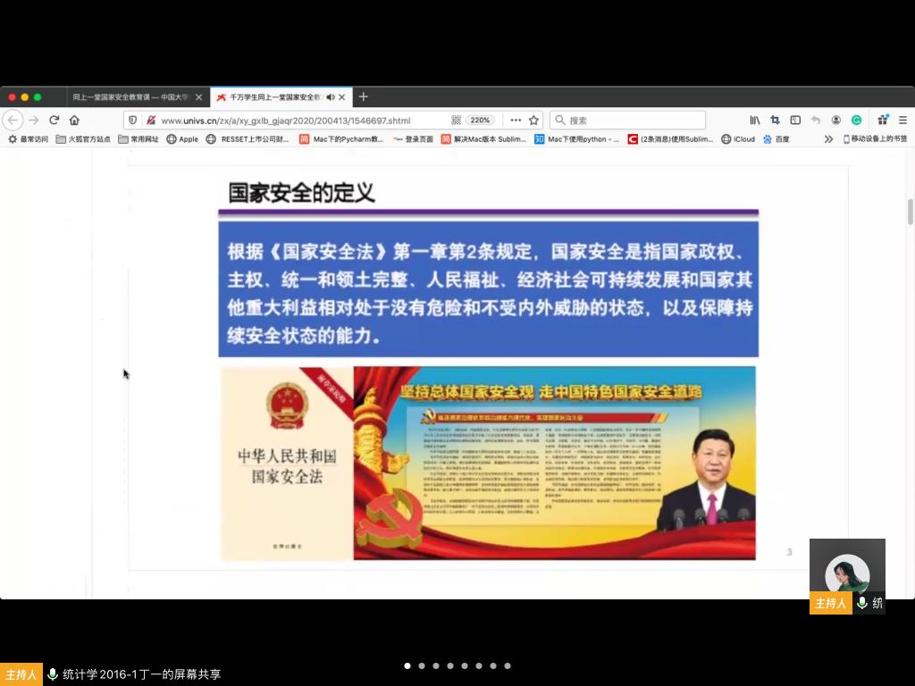 2020年4月15日是第5个全民国家安全教育日,为持续加大总体国家安全观宣传力度,响应“坚持总体国家安全观,统筹传统安全和非传统安全,为决胜全面建成小康社会提供坚强保障”国家号召,增强国家安全意识,新濠博亚娱乐 学生第一党支部根据学校有关通知精神,通过“腾讯会议”组织全体党员以及入党积极分子一同观看了由公共安全领域专家、中国工程院院士范维澄主讲的“总体国家安全视角下的疫情防控”国家安全教育课。