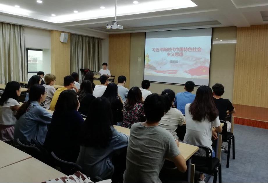 潘志航从“开拓中国特色社会主义更为广阔的发展前景”、“党和国家事业的历史性成就和历史性变革”、“夺取新时代中国特色社会主义伟大胜利”三个方面带领同学们进行了学习,他希望广大党员保持勤俭节约、艰苦奋斗的作风,以时不我待、只争朝夕的精神,奋力走好新时代的长征路。牛依山介绍了习近平新时代中国特色社会主义思想这一马克思主义中国化最新成果的重大理论意义和实践价值,号召同学们要始终坚持以习近平新时代中国特色社会主义思想武装头脑、指导实践,志存高远、脚踏实地,努力在实现中国梦的伟大实践中放飞青春梦想、书写人生华章。