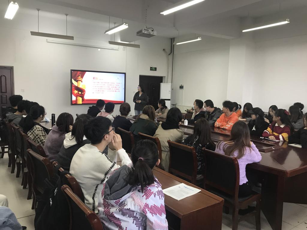 11月13日下午,新濠博亚娱乐 在J9-425会议室举办了第60期“青春党建微讲堂”主题教育活动。本期“青春党建微讲堂”由本科生第四党支部党员吕琳和肖雅慧担任主讲,本科生第四党支部全体党员、入党积极分子参加活动。