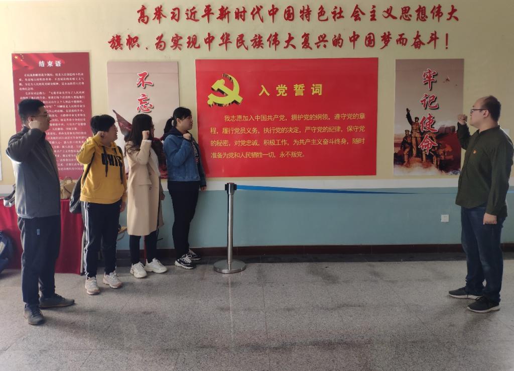 在革命历史纪念馆内,支部党员在一幅幅展览图片和一件件实物前驻足观看、感悟沉思,聆听着烽火岁月的革命故事,缅怀着革命先烈们的丰功伟绩。展馆中的几百幅图片和件件实物详细记载了在中国共产党领导下,胶北人民浴血奋战、全力抗敌,最终取得革命胜利的艰苦卓绝的历史。参观结束后,支部党员在支部书记付余的带领下庄严地重温入党誓词。