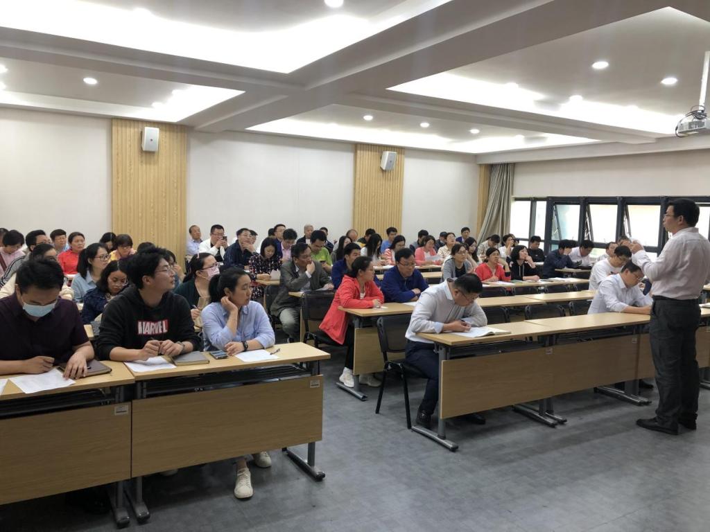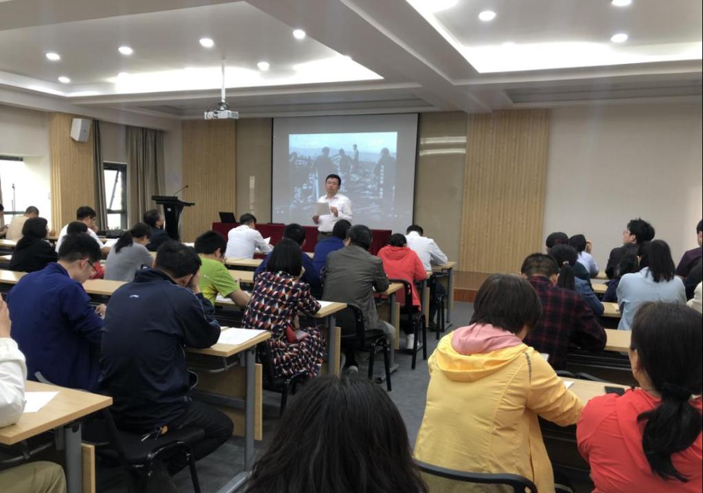 全体教职工在J9-433集中观看纪录片《为时代而歌:袁隆平》,会议由党委书记徐明磊主持。
