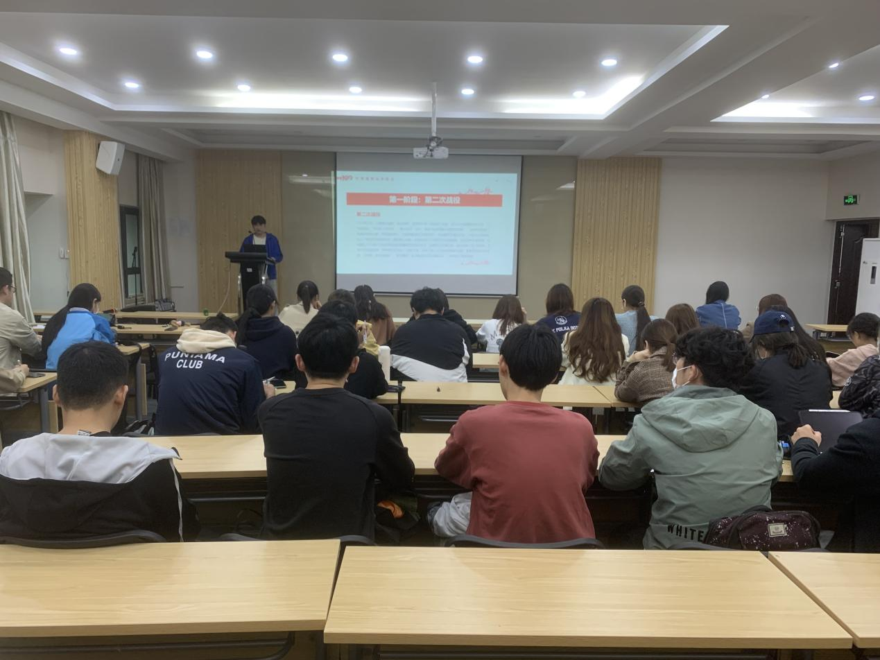 李仟奕带领同学们回顾了抗美援朝战争的历史。历时两年零九个月的抗美援朝战争,从决定出兵到胜利收兵,自始至终高扬着中国共产党、中国人民志愿军和中国人民的爱国主义精神,有力维护了祖国和人民利益,打出了国威军威,使刚成立不久的社会主义新中国能够顶天立地地立足于世界舞台。