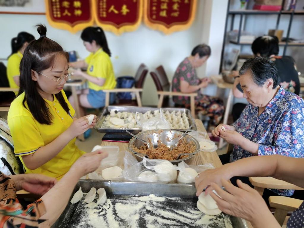 一到养护院,志愿者们就分为若干个小组开始忙碌起来。有的志愿者到各楼层陪老人们谈心聊家常,听他们讲述自己的故事;“温牛奶、蜂蜜、香蕉都能帮助睡眠,心态也很重要...”有的志愿者为老人们讲解养生小知识;有的贴心地帮助行动不便的老人整理内务、清扫房间...活动中,志愿者们还与老人们一起包饺子,并精心准备了文艺节目。