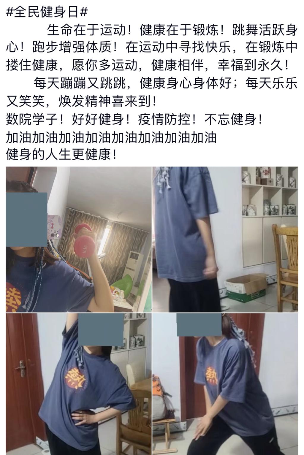 为培养大学生积极健康的生活方式,增强体质,筑牢疫情的青春防线。8月8日,正值第13个“全民健身日”,新濠博亚娱乐 学生会利用线上平台举办了全民健身打卡活动。