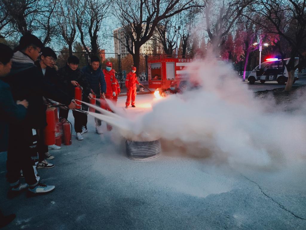 培训现场,王春暖结合典型案例向同学们详细讲解了在遇到紧急情况时应采取的应急措施和处理流程,介绍了校园中常见的火灾种类、起因及危害性,让同学们深切感受到预防校园火灾的重要性。马坤现场示范了干粉灭火器的正确操作和使用方法,讲解了灭火器的使用范围、灭火的注意事项和灭火要领等。为进一步巩固灭火技巧,同学们在学校安保人员的协助指挥下分组进行了灭火器的使用实操演练。