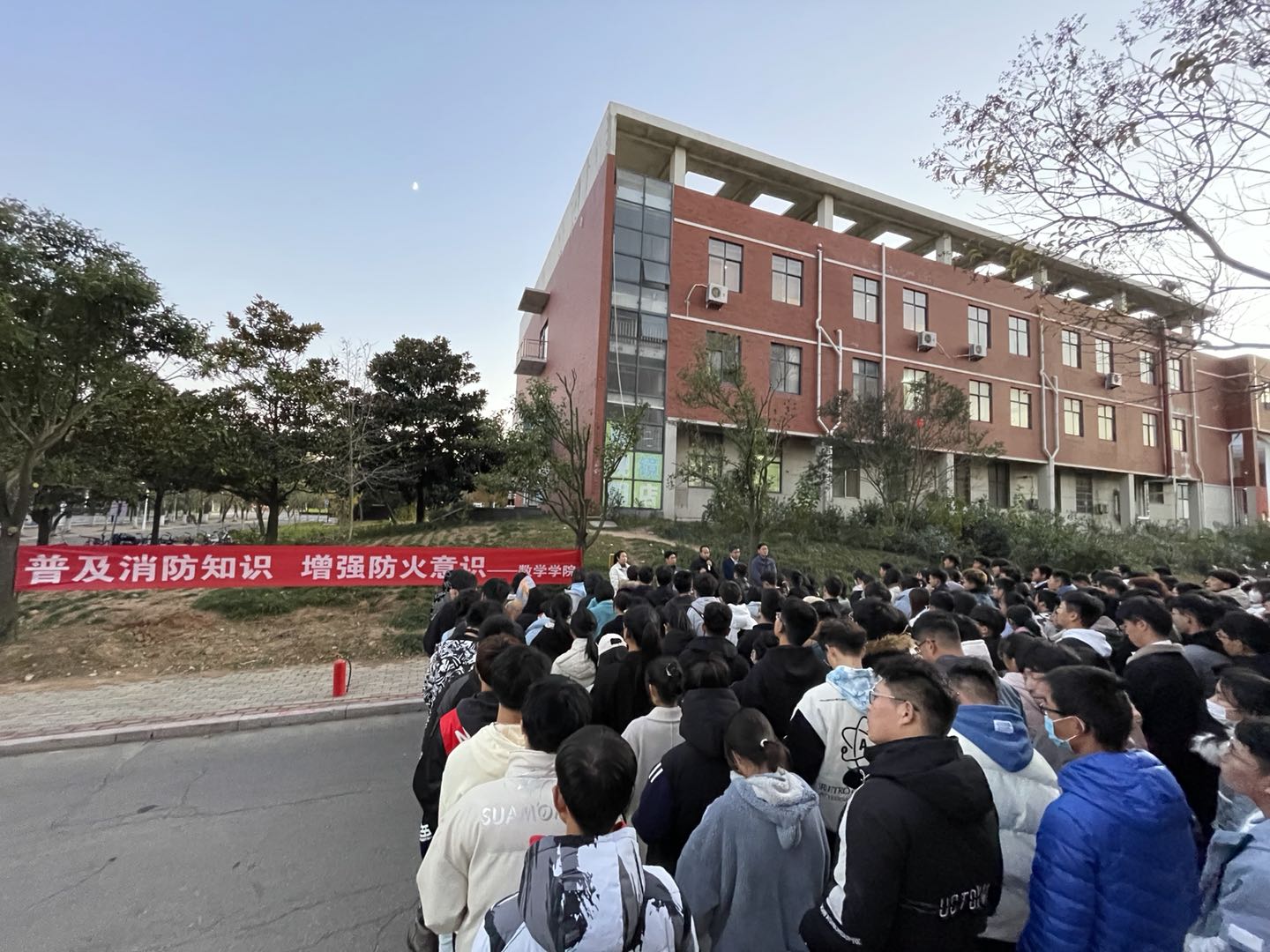为普及消防安全知识,进一步提高学生消防安全意识和火灾预防应变能力,11月11日下午,新濠博亚娱乐 在C1学生公寓区组织开展消防培训与现场演练活动,校安管处副处长王春暖、学生处副处长朱景星、学生处公寓管理中心于海峰老师、安管处技防科马坤老师出席活动,近200名学生参加培训。活动由新濠博亚娱乐 学工办主任、团委书记谢菲菲主持。