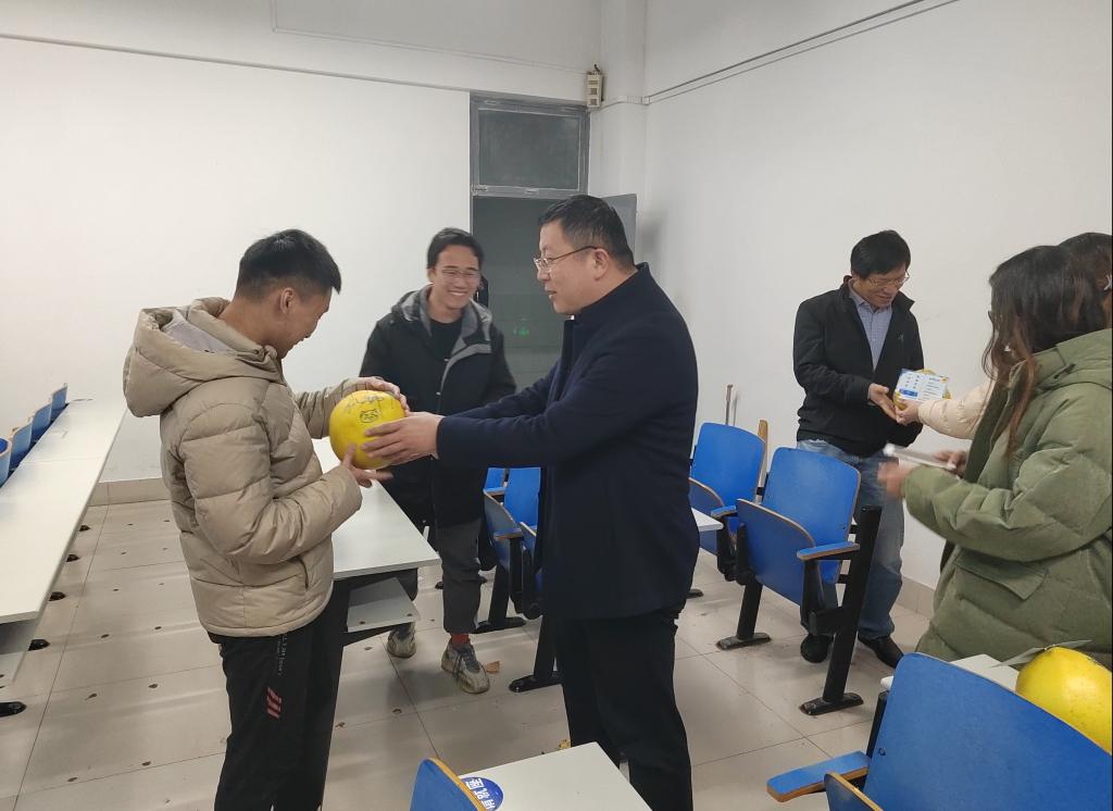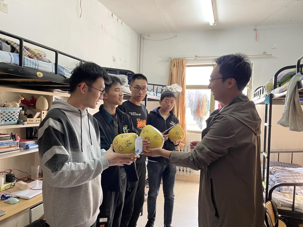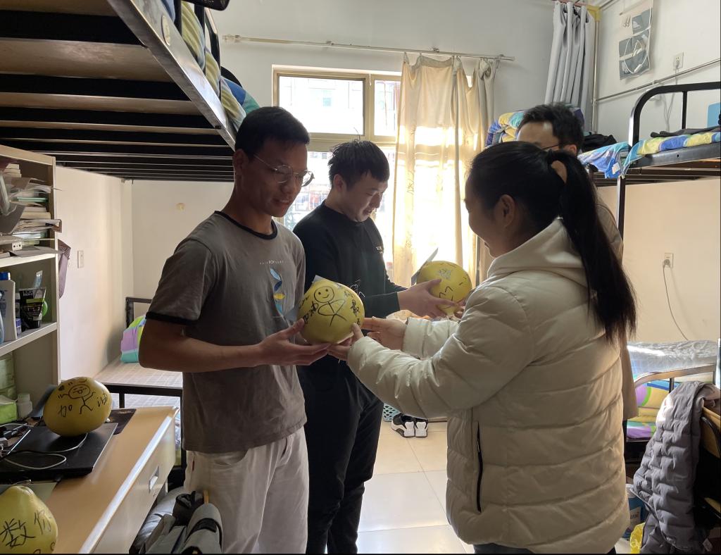 在新濠博亚娱乐 B8、A15公寓二楼的文化阵地内,整齐摆放着300余个柚子,走近一看,成堆的柚子上面还绘有可爱生动的卡通图案、俏皮的表情包带着鼓励的话,别在柚子身上的卡片也写满了祝福的话语,“考研的路上,你永远不孤单”、“待到雨散看天青 守得云开见月明”...考研自习室、宿舍楼内,是新濠博亚娱乐 副院长杨红卫、系主任崔玉军和全体辅导员正在“挨家挨户”为考研的学子发放加油‘柚’,为他们加油鼓气,嘱咐他们以积极向上,乐观自信的心态迎接考试,在谈及送柚子的寓意时,团委书记谢菲菲说:“考研临近,柚子的清香可以帮助学子解压,也有‘加油呦’的寓意,师生共同制作的300余份‘加油柚’和‘加油卡’是一份心意,更是对考研学子的一份鼓励。”