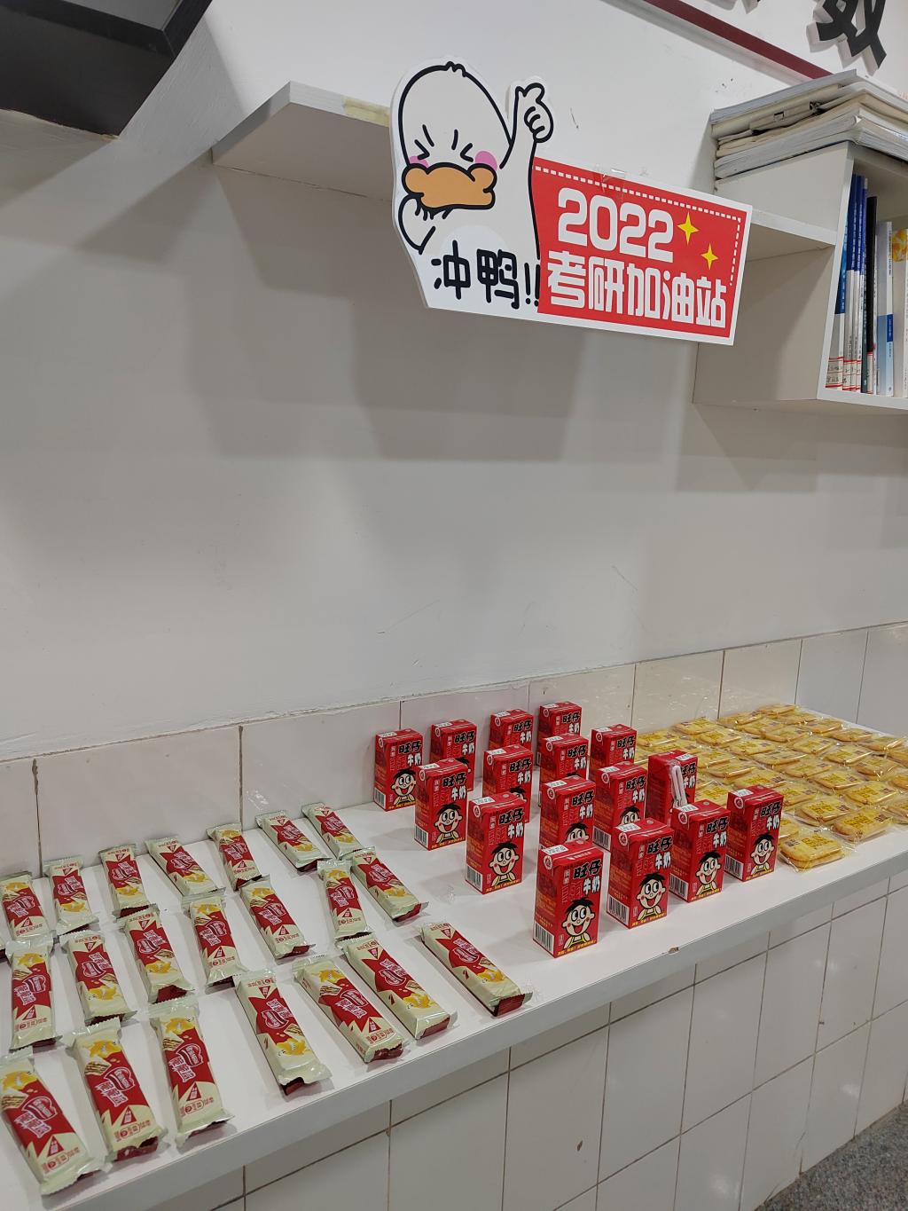 为了不打扰考生复习,新濠博亚娱乐 还专门在宿舍一楼设置了“考研加油站”,考生们可以根据自己需要免费领取牛奶、巧克力及旺旺雪饼等。