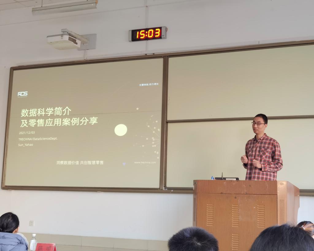 赵子辉从who、why、how三个方向介绍了创迹数据团队的工作,从数据科学的应用场景到数据产品的层次性再到数据产品的落地案例,给同学们带来了不一样的感受,让同学们能够直观地了解本专业在企业所从事的工作内容和发展前景。孙亚豪通过大量生动的工作案例,提出了数据科学的人才画像应兼具领域知识、数学与统计学、计算机科学的观点,他希望同学们能够学好大数据专业所需的数学、统计及计算机方面的知识,尤其是要注意知识体系的搭建和逻辑思维能力的培养,在校期间要通过竞赛来提高专业技能,为走向更高的人生平台打下坚实基础。