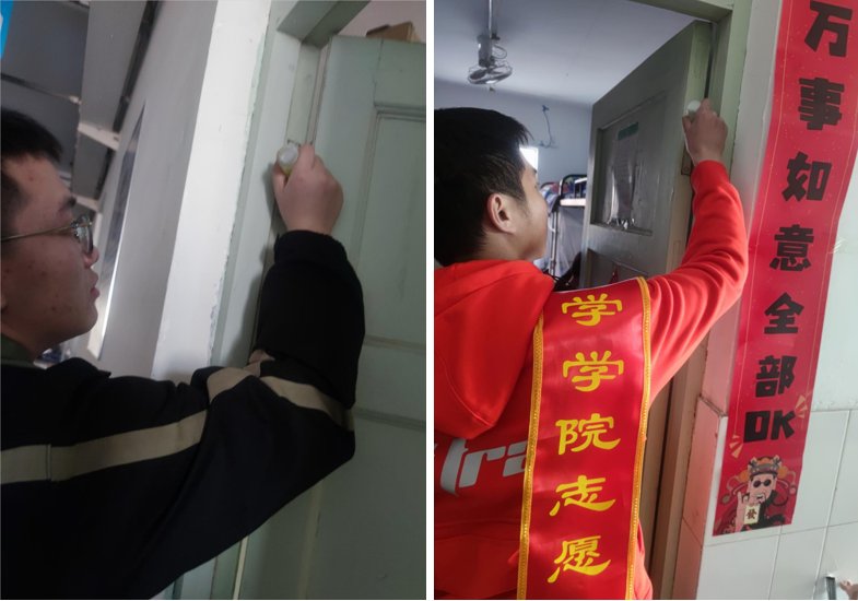 活动当天,伴着初春的阳光,志愿者们早早地在公寓楼下集合,在领取消噪工具及有序分工后,志愿者们进入宿舍开始了有条不紊的消噪活动。检查询问、扶门注油,志愿者们热情服务,配合默契,经过一个多小时的努力,任务圆满完成,他们认真工作的态度受到了同学们的一致好评。