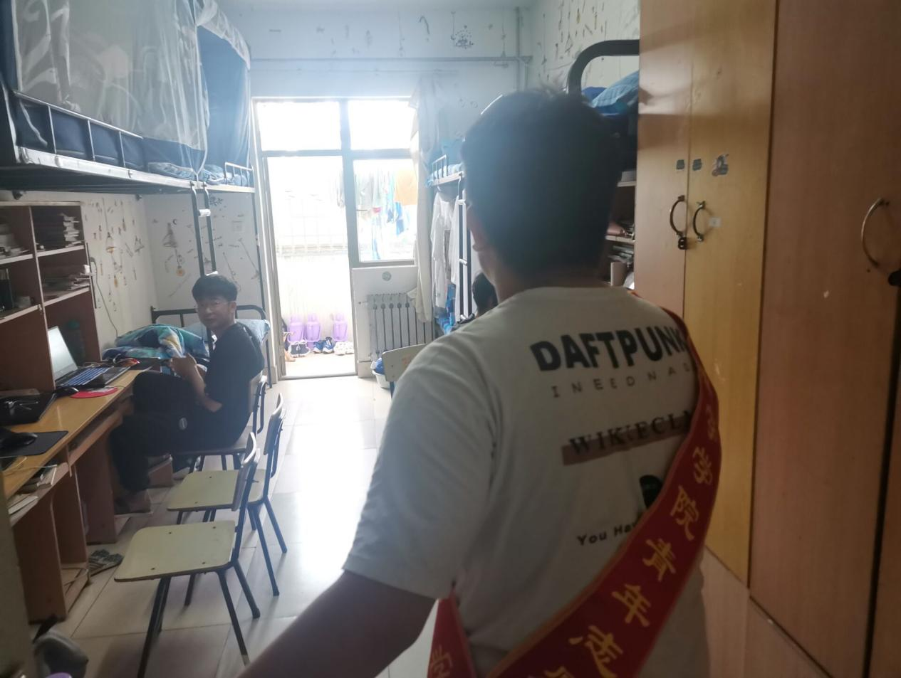 志愿实践部在学生公寓楼内开展“宿舍安全问题排查”活动。