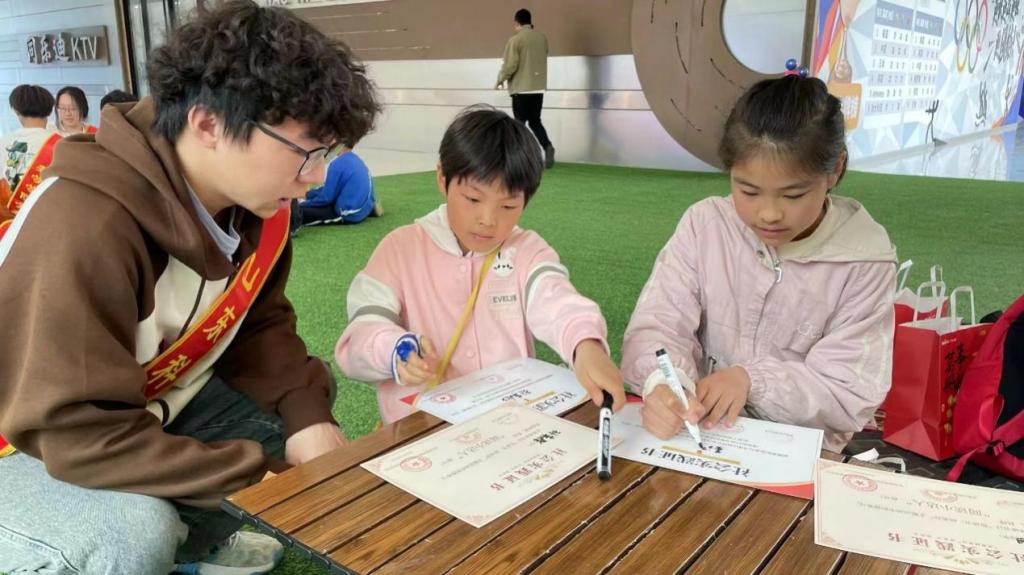 志愿者为社区学生发放奖状