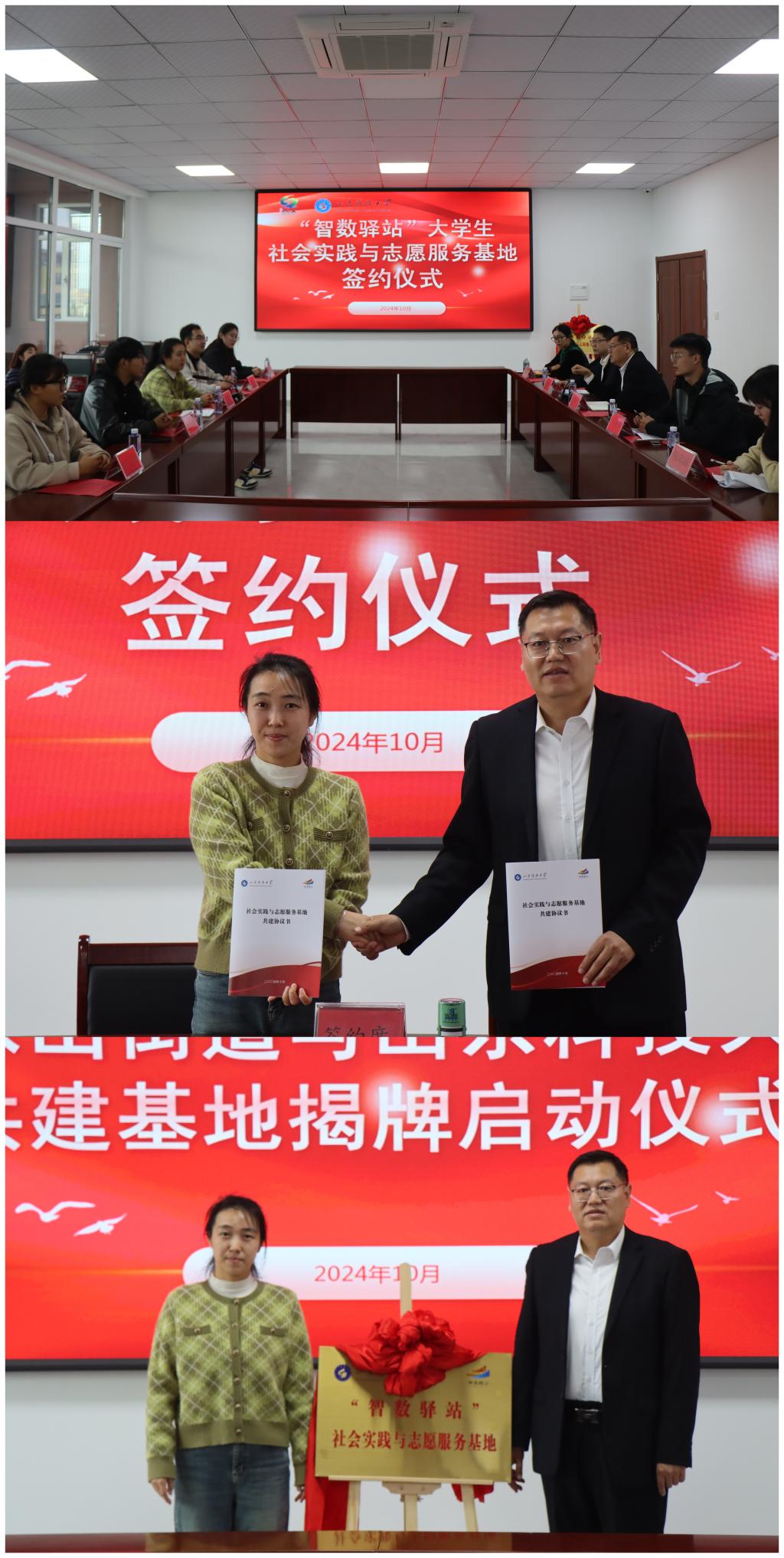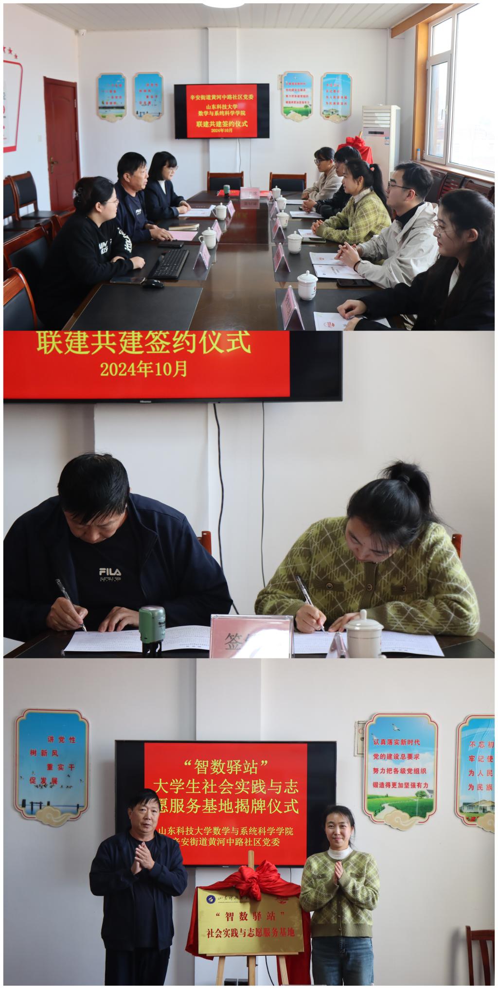 的基本情况,期望以共建社会实践与志愿服务基地为起点,共同打造一个既能拓宽学生视野、提升能力、锻炼品格、磨砺意志,又能推动大学生社区实践向长效化、专业化、品牌化方向发展的高质量平台。随后,双方分别在两个社区签署了《山东科技大学社会实践与志愿服务基地共建协议书》,并为基地揭牌。