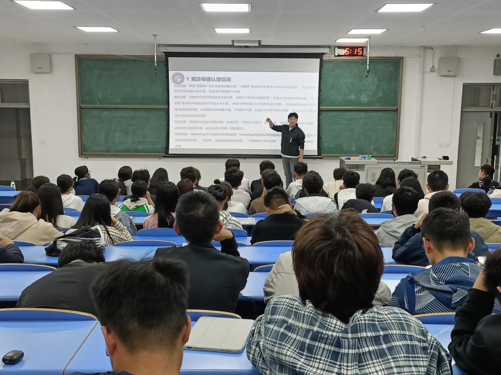 历届获奖情况等方面进行了重点分析,他鼓励同学们在大学期间要制定好自己的学业生涯规划,积极参与科研项目和科创竞赛,提升科学素养和探究能力,为踏上更高人生平台奠定良好基础。