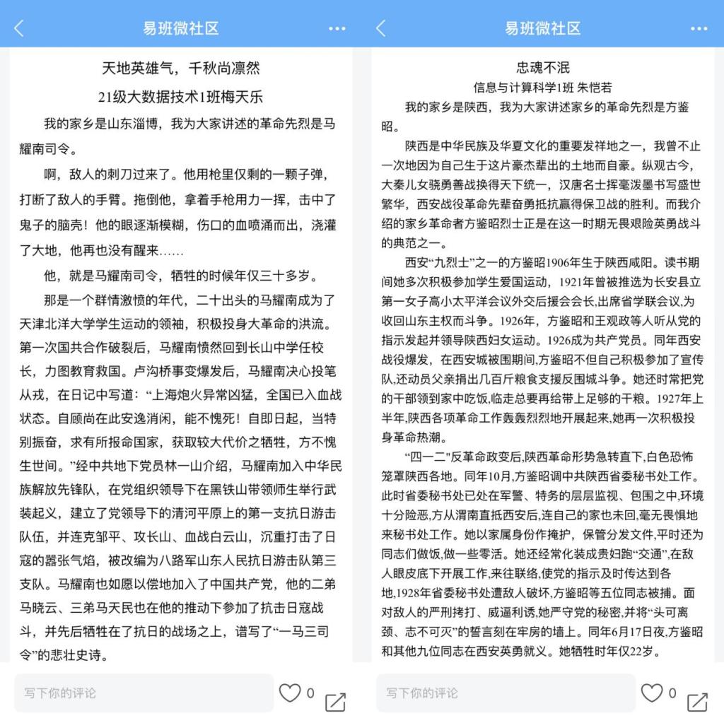 活动共收到近百篇精美征文,并将获奖征文在易班APP进行展示,“回想起祖辈们艰难的抗战路,眼眶便不自觉的被打湿。耳中有咆哮,心中有烈火,这正是新时代青年大学生的责任与担当...”振奋激昂的话语诉说着他们对党和国家的深切热爱。