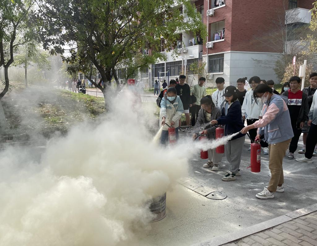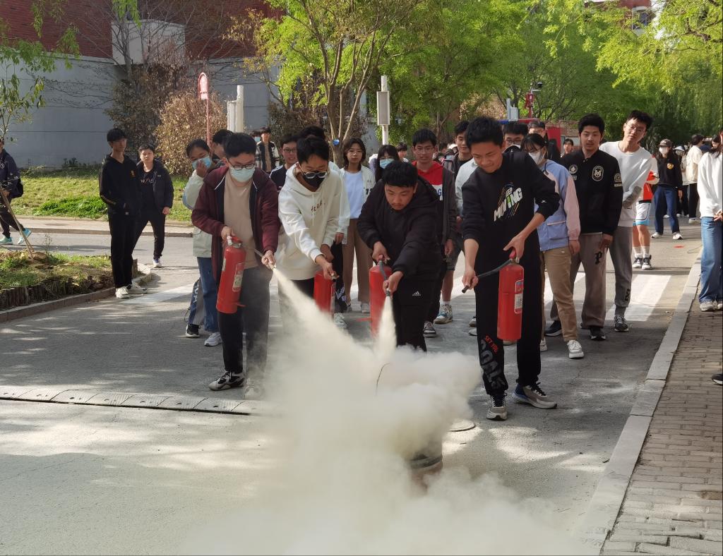 活动中,王春暖向师生们详细介绍了消防演练的重要意义,讲解了遇到紧急情况时应采取的应急措施和处理流程,并结合高校发生的火灾事故案例,分析了火灾发生的常见原因以及对社会和学校造成的严重危害。朱景星指出,公寓是大学生学习生活的第一社会、第二家庭、第三课堂,是消防安全的重点区域,要切实增强消防意识、丰富消防知识、提高消防能力,共同营造安全稳定的工作、学习和生活环境。实战灭火训练中,陈浩为同学们进行了标准示范,并指导同学们使用灭火器进行现场灭火演练,同学们遵照“提灭火器、拔保险、压手柄、对准火源根部”等四个要素顺利完成灭火。