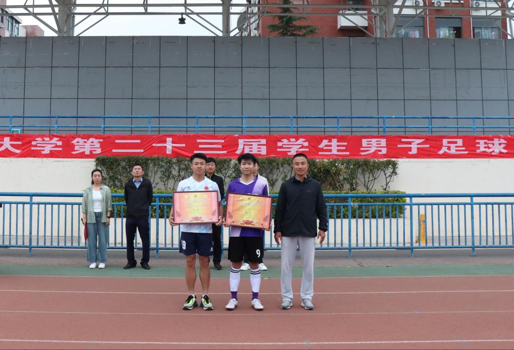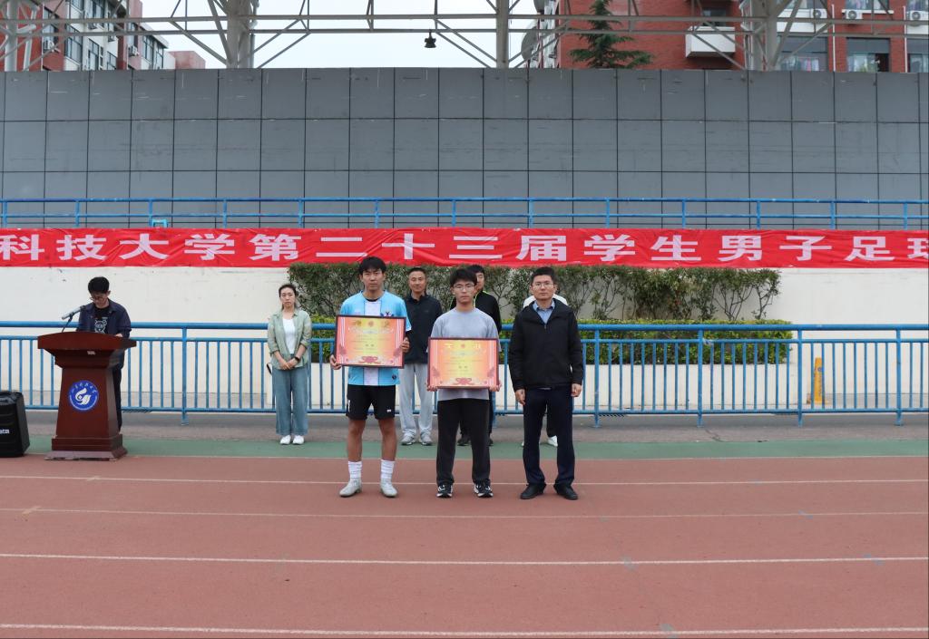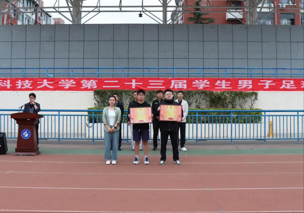 为深入学习贯彻党的二十大精神,鼓励青年学生投身锻炼、磨炼意志、强健体魄,促进大学生全面发展和健康成长,近日,由校团委主办、数学学院团委、艺术新濠博亚娱乐 团委承办的山东科技大学第二十三届学生男子足球赛圆满落幕。校团委副书记常龙、体育新濠博亚娱乐 群体活动部主任时洪举、新濠博亚娱乐 团委书记谢菲菲等出席闭幕仪式并为获奖球队和个人颁奖。