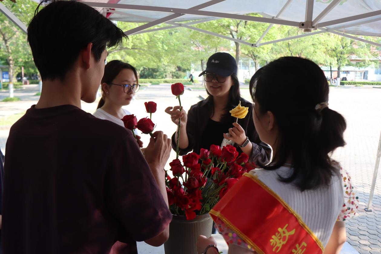 于繁星广场举办“玫好同行,共赴花开”玫瑰花赠与活动。此次活动以 “花漾青春・趣享时光”为设计主线,通过游戏互动的形式搭建起同学间沟通的桥梁。