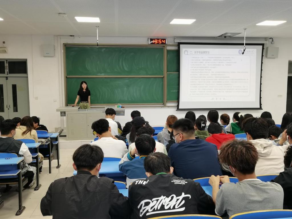 七位成功推免、考研上岸的学长学姐娓娓而谈,为学弟学妹们讲述自己在学习和工作上的成长经验。封奕宇和南来馨着重强调了学习效率的重要性,以及如何在日常繁重的学习任务中劳逸结合;何静和桑雪结合自身的推免经历,鼓励同学们在保证学习的基础上,要积极参与各类科创竞赛,为全面发展奠定良好基础;解树伟、李铮、付英良结合自身的备考过程,告诫同学们要注重日常时政知识点和英语的积累,不能临时抱佛脚,同时,要学会调整好自己的备考心态,脚踏实地,量力而为。