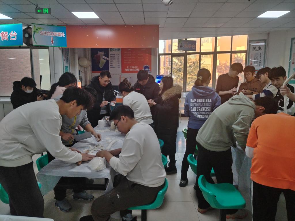 好吃不过饺子,温暖不过团聚。老师和同学们纷纷拿起擀面杖,亲自动手包起了饺子。饺子皮白馅鲜,过程中,同学们开心地分享着家乡的包饺子传统,老师们则纷纷讲述着儿时趣闻,传授着生活经验。一阵忙碌过后,热气腾腾的饺子出锅了,一个个饱满圆润的饺子中蕴含着浓浓的师生情,老师与同学们一边吃饺子一边话家常,现场欢声笑语,其乐融融。