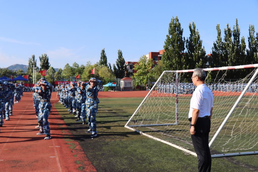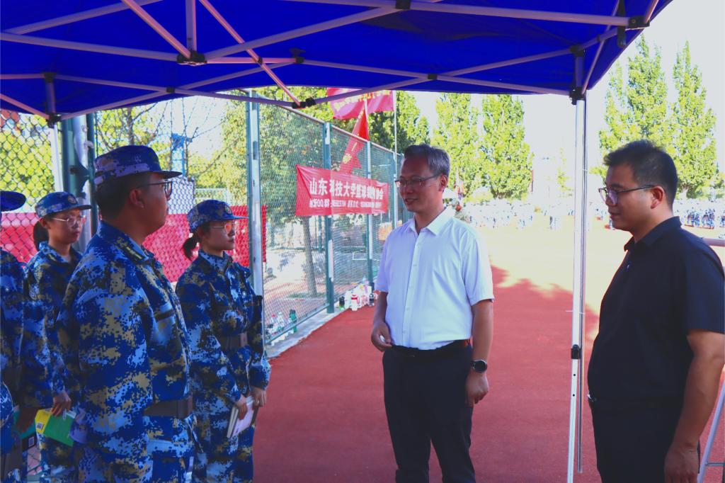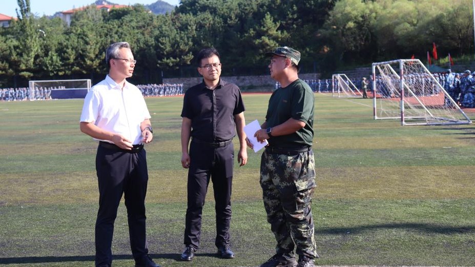 党委书记贾红果、党委副书记兼副院长尹建亲临军训现场,深入了解军训情况,细致观察学生军训表现,检查后勤保障和军训氛围营造工作。贾红果书记针对后续训练工作提出了要求,要教育学生思想重视军训、提升军训训练质量,培养学生的“精气神”。最后,贾红果书记亲切慰问见训学生情况,并鼓励他们在军训期间做些自己力所能及的服务工作,以另一种方式参加军训,融入集体。