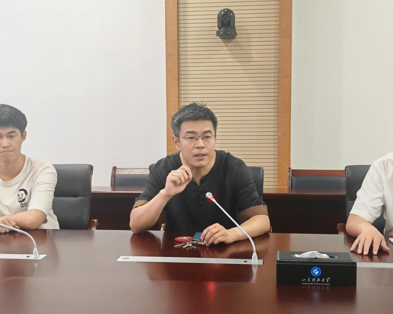 党委书记贾红果,党委副书记兼副院长尹建于图书信息中心202会议室与院篮球队全体队员进行座谈,邀请体育新濠博亚娱乐