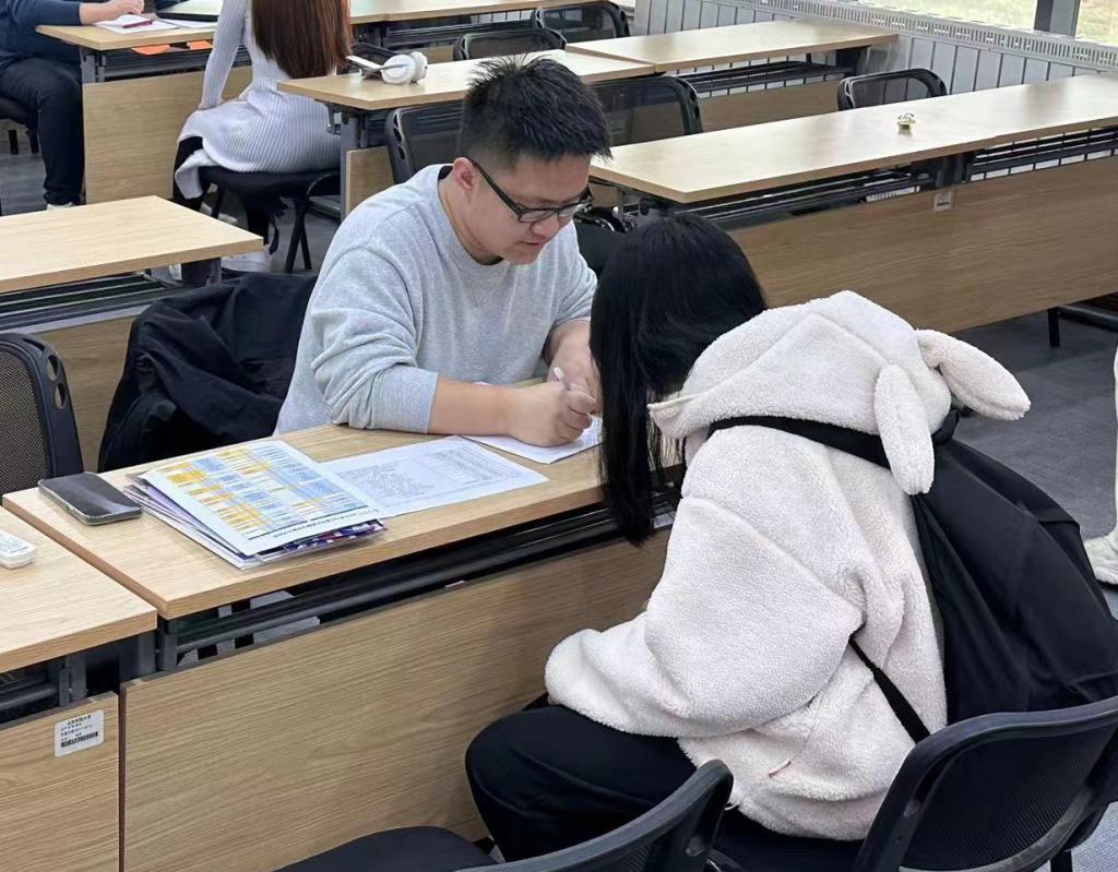 活动现场,各位老师通过了解同学们所学专业、学习成绩等情况,针对同学们意向申请留学的国家和院校,从准备材料、申请流程、文书写作、时间安排、留学费用等方面进行梳理和介绍,并结合同学们实际情况和发展方向,提供专业指导建议,帮助同学们定制个性化的留学方案。