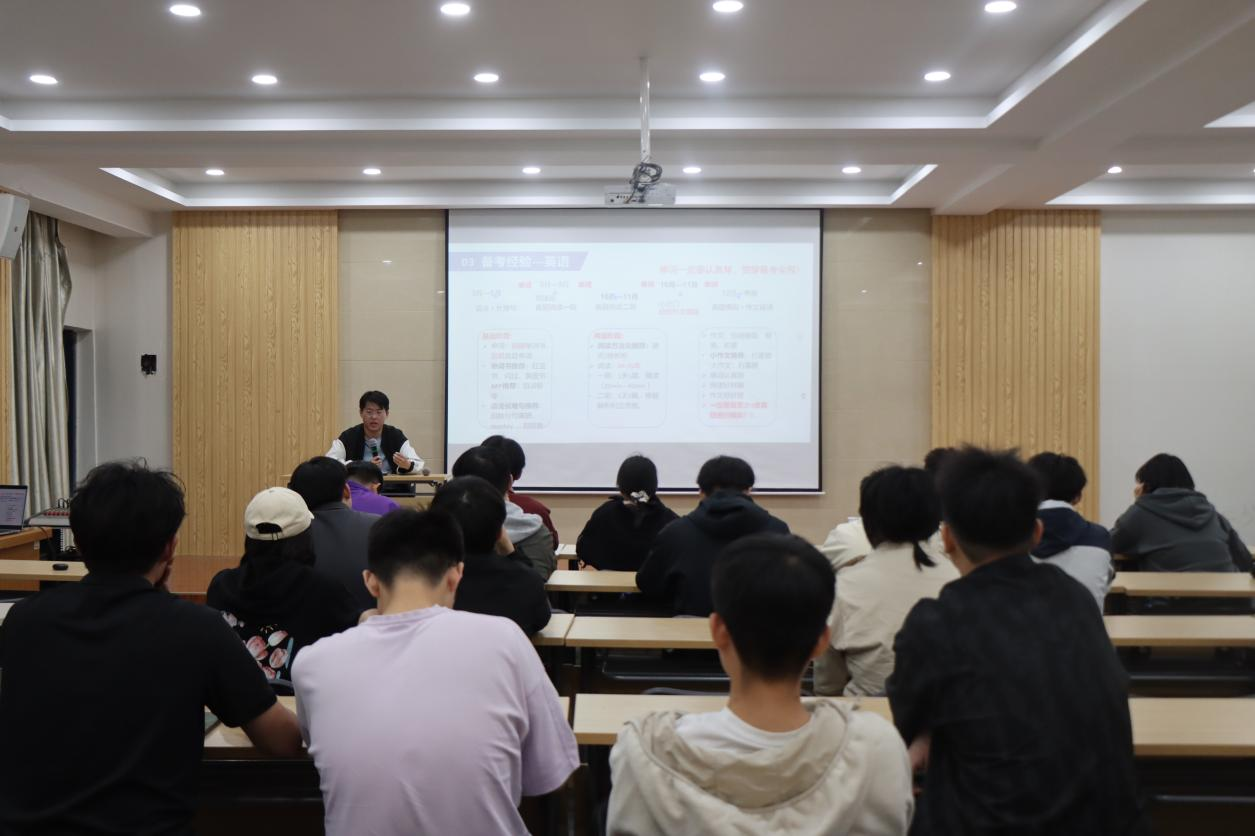 毛加强以“择校择专业决定成败”展开分享,他指出“选择大于努力”,考研需综合评估自身兴趣、学科基础与院校考情,重点关注专业课题型、历年录取分数趋势。他希望同学们要科学设置考研目标,避免好高骛远,以考取研究生为最终目标。