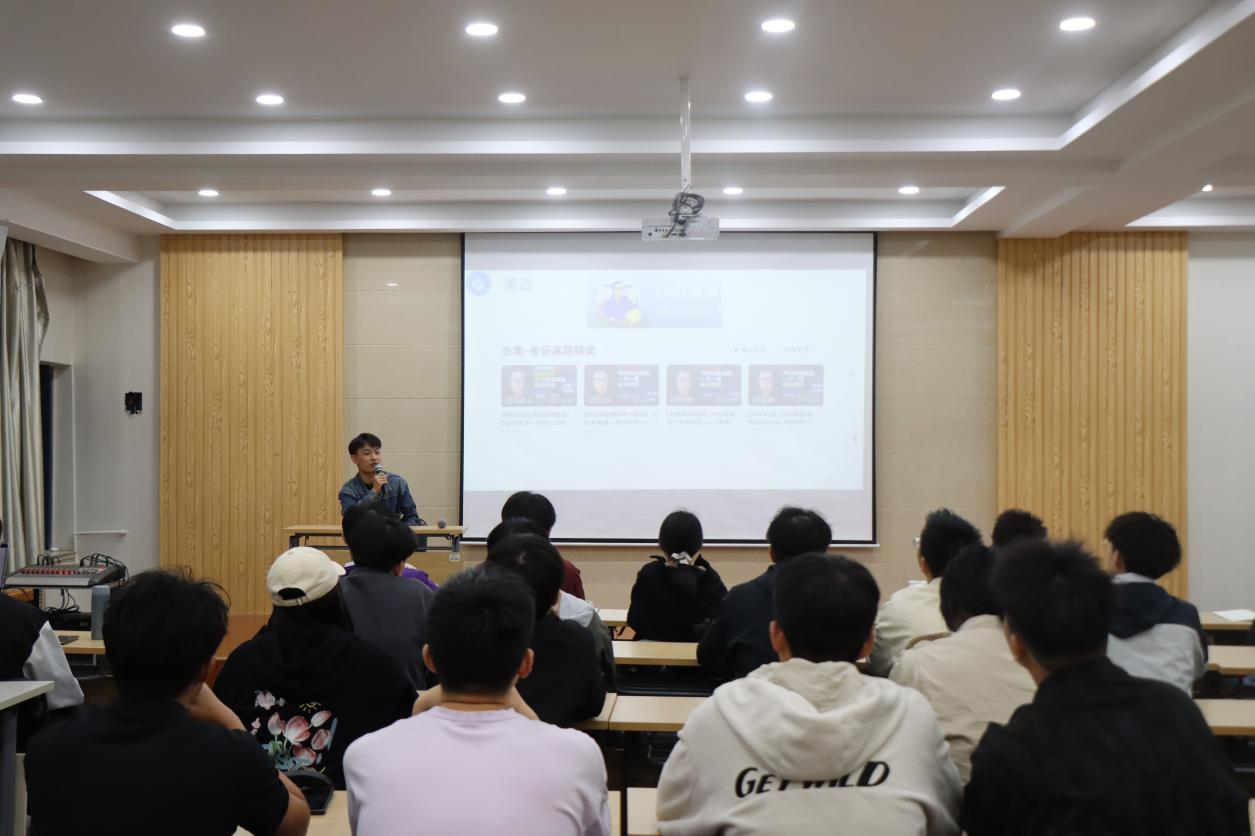 施丞俊以“时间管理是考研制胜的关键”进行分享,他梳理了考研关键时间节点,并展示了自己每日“三段式”学习安排。他特别强调复试中笔试的重要性,他建议同学们要提前梳理专业核心考点,并在面试中保持自信,主动展现学科交叉的专业优势与能力素养。