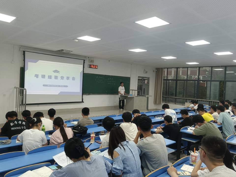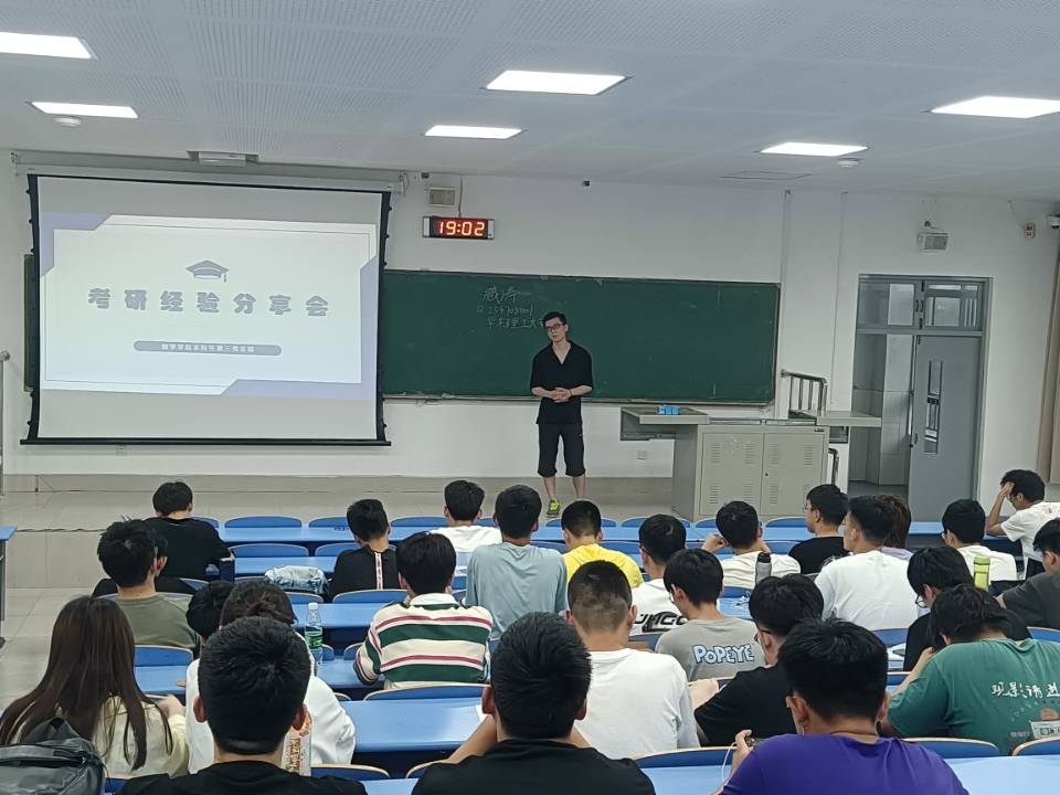 分享会上,夏琦清针对推免的流程作了详细介绍,鼓励同学们参加夏令营与预推免,为自己的保研之路保驾护航,同时,他指出也要注重自己综合素质的提升,尤其是学习成绩和科技竞赛,王圣钦、臧涛和吴传久结合自身经历对各自的考研学校及跨考计算机相关专业的心得作了详细介绍,并分享了各自考研科目的高分秘籍,尤其强调英语学习的重要性。高万全建议报考数学的同学加强课本的复习,注重细节,不放过每一个定理、每一道题,在复习过程中利用好学习笔记与错题笔记,为自己的复习之路打下坚实基础。最后,五位学长与在场同学进行了交流讨论,耐心解答了同学们提出的问题。