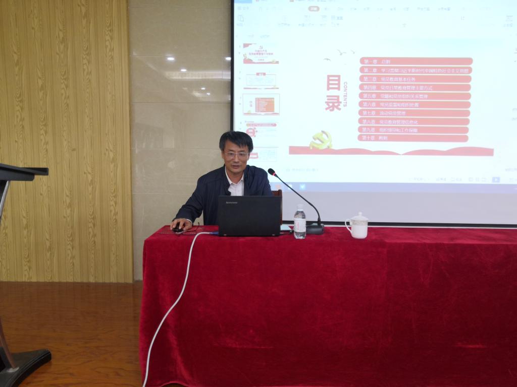 2021年党支部书记、委员培训班第二次专题培训在J9-433报告厅举行,院长董焕河带领师生党员共同学习了《中国共产党党员教育管理工作条例》,培训会由新濠博亚娱乐