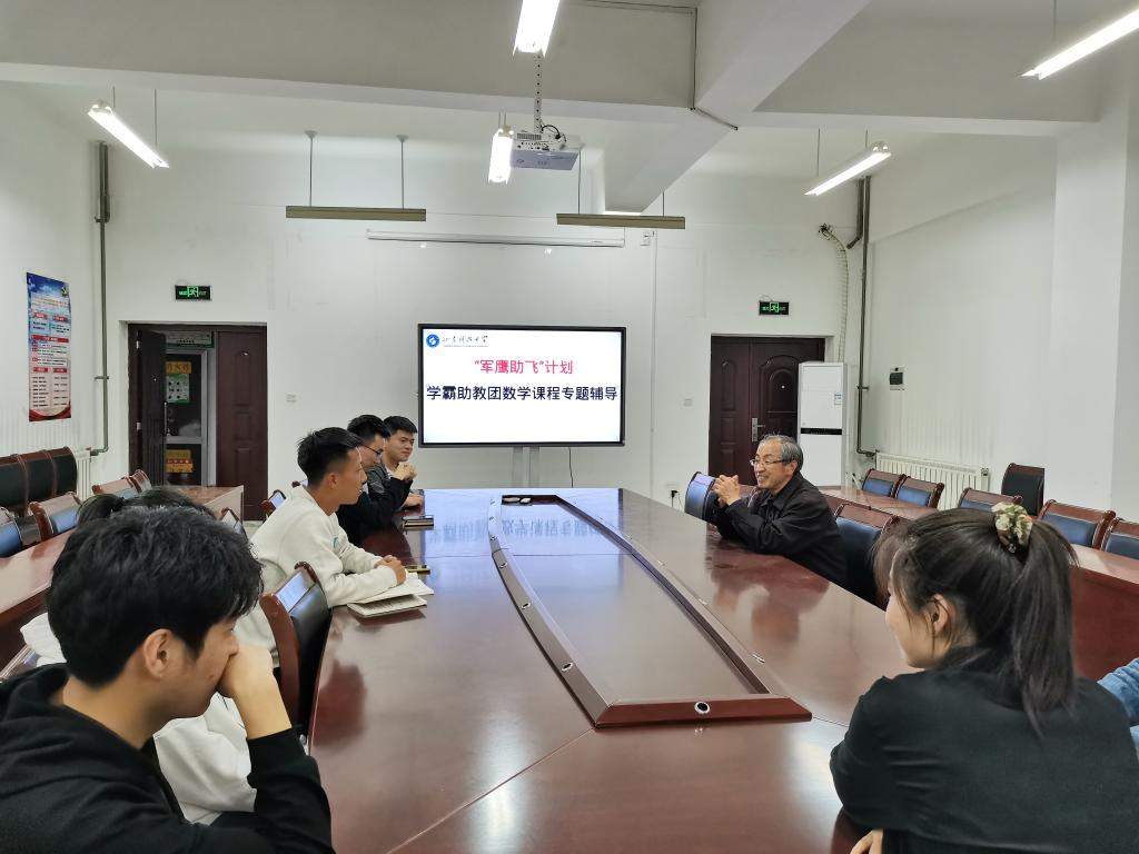 为帮助退役复学学生更好的学习数学课程,5月7日晚,新濠博亚娱乐 在J9-425顺利举办“军鹰助飞”计划学霸助教团专题辅导。山东省教学名师、新濠博亚娱乐 数学教学研究部主任赵文才教授参加辅导活动。