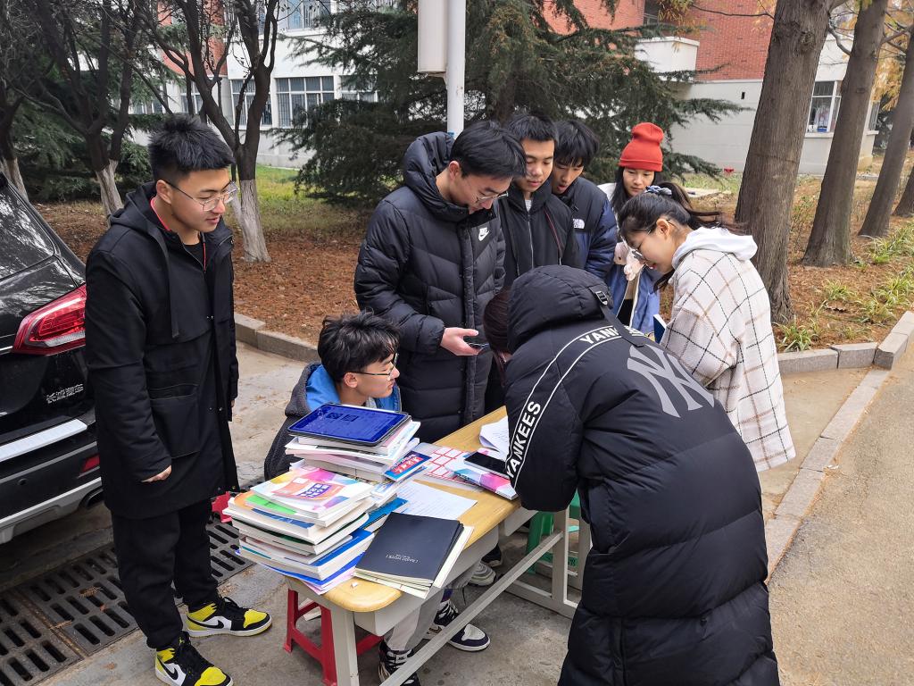 学生会自律会在宿舍楼B6-B8楼下组织开展了“同心向学 共沐书香”宿舍图书捐赠活动。