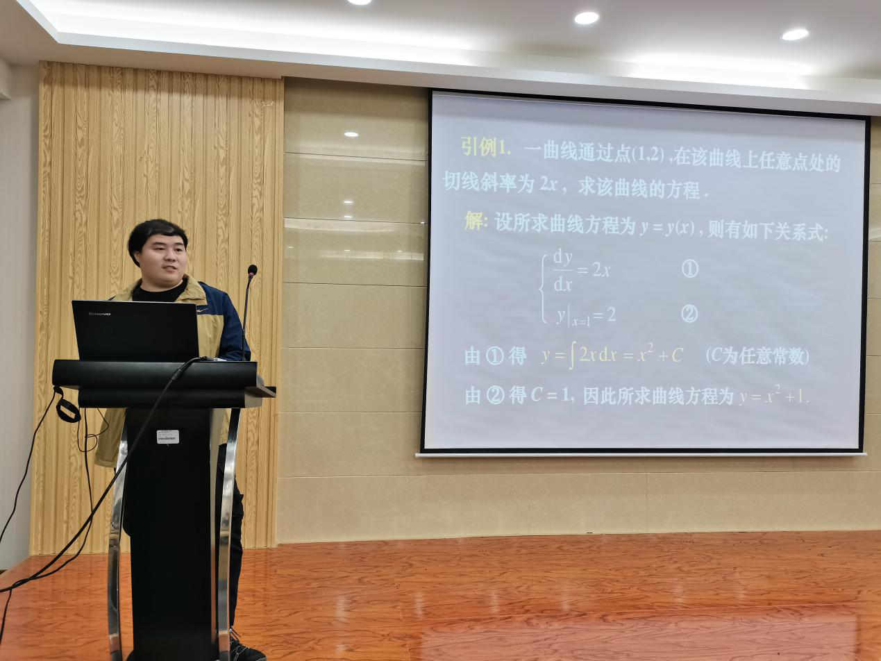 张海溯以“微分方程的概念”为切入点,向同学们介绍了微分方程的种类以及求解方法,并列举了相应的例题来加深理解。随后刘晓向同学们介绍了微分中值定理的三种类型,并对定理进行了详细证明,提高了同学们利用微分中值定理解答相关题目的能力。在讲座最后,两位助教结合自己的学习经历,向大家分享了自己的学习方法和技巧,指出只有夯实基础,不断总结题型和答题技巧,才能在考试中取得高分。