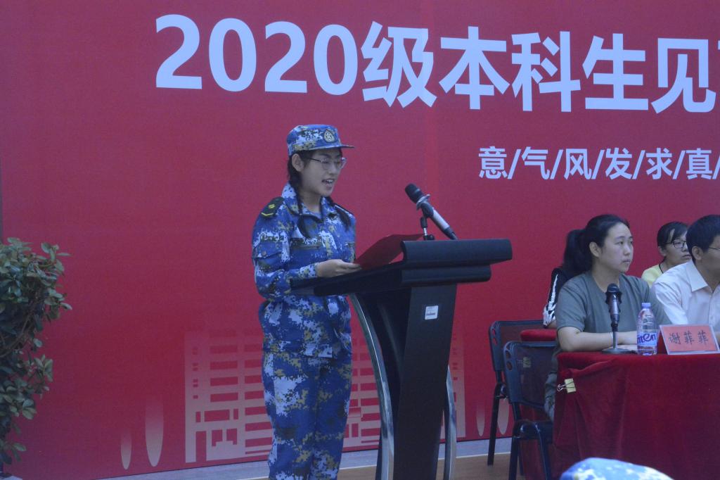 在校生代表、2017级统计学专业王玺祥与新生分享了自己大学生活的经验与感悟,她希望同学们及时调整心态,明确大学目标;学好专业知识,立志成长成才;积极参加校园文化活动,锻炼各方面能力,在新的舞台继续创造新的辉煌。新生代表数学与应用数学专业刘笑蕙发言说,定会不负期望,尽快适应大学生活,调整好学习与生活的节奏,树立正确的人生目标,以良好的状态投入到大学生四年的学习生活中去。