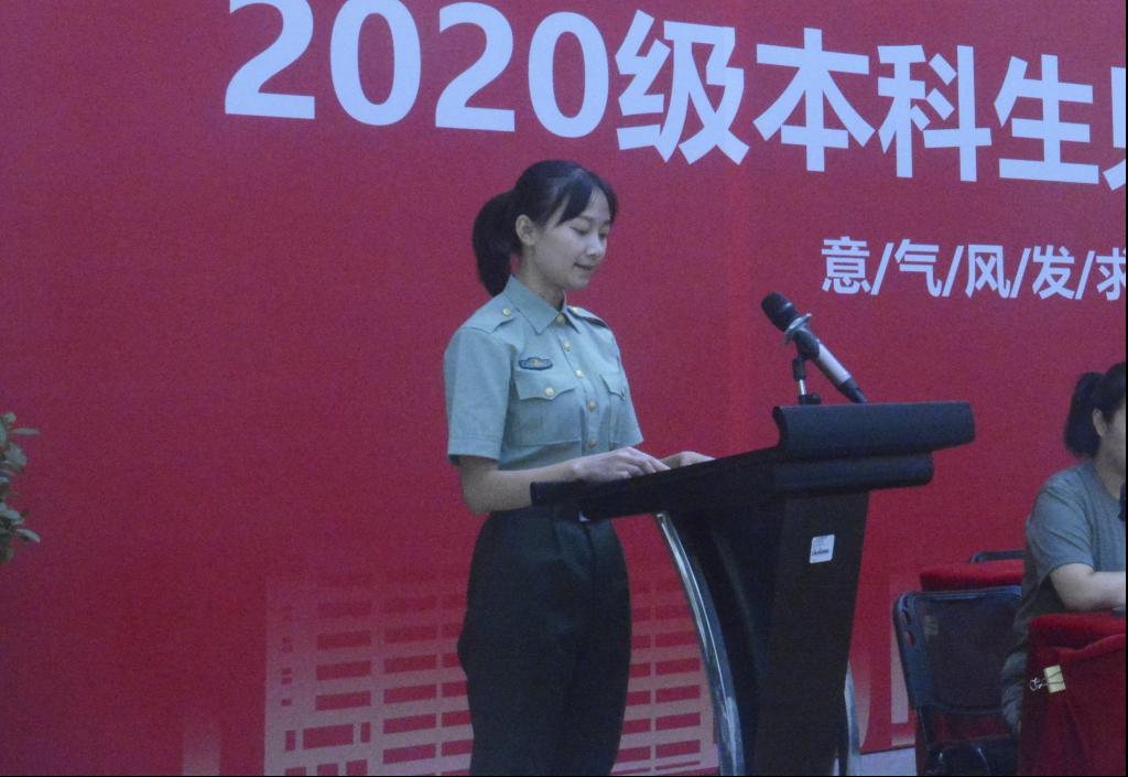 在军训动员大会上,2017级信息与计算科学专业退役复学学生陈美芳上台发言,她表示,军训过程虽然艰辛、难熬,但没有挑战的人生是不完美的,没有考验的生活是不完整的。她希望同学们在接下来的训练中能够全力拼搏,不给自己的大学留下遗憾。