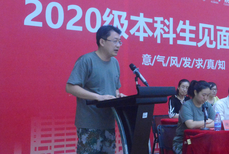 数学与应用数学系主任崔玉军教授作为教师代表发言,他向新生的到来表示热烈欢迎和衷心的祝贺。“唯有勤奋、拼搏才能到达成功的彼岸”,他希望同学们从四个方面做好自己:做一个有道德的人,做一个自律、有规划的人,做一个内心强大的人,做一个会学习、擅思考的人。